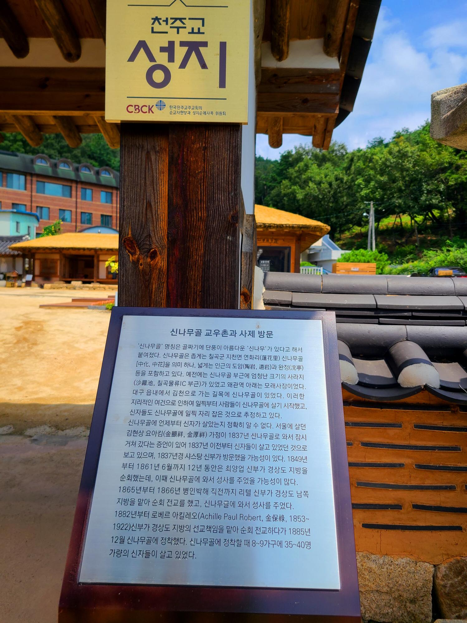신나무골 성지는 조선 후기 천주교 박해를 피해 모였던 신자촌이다. 또한 대구를 지척에 둠으로써 당시 많은 선교사들이 대구 진출 전초 기지로 삼아 사목 활동을 했던 곳이다.