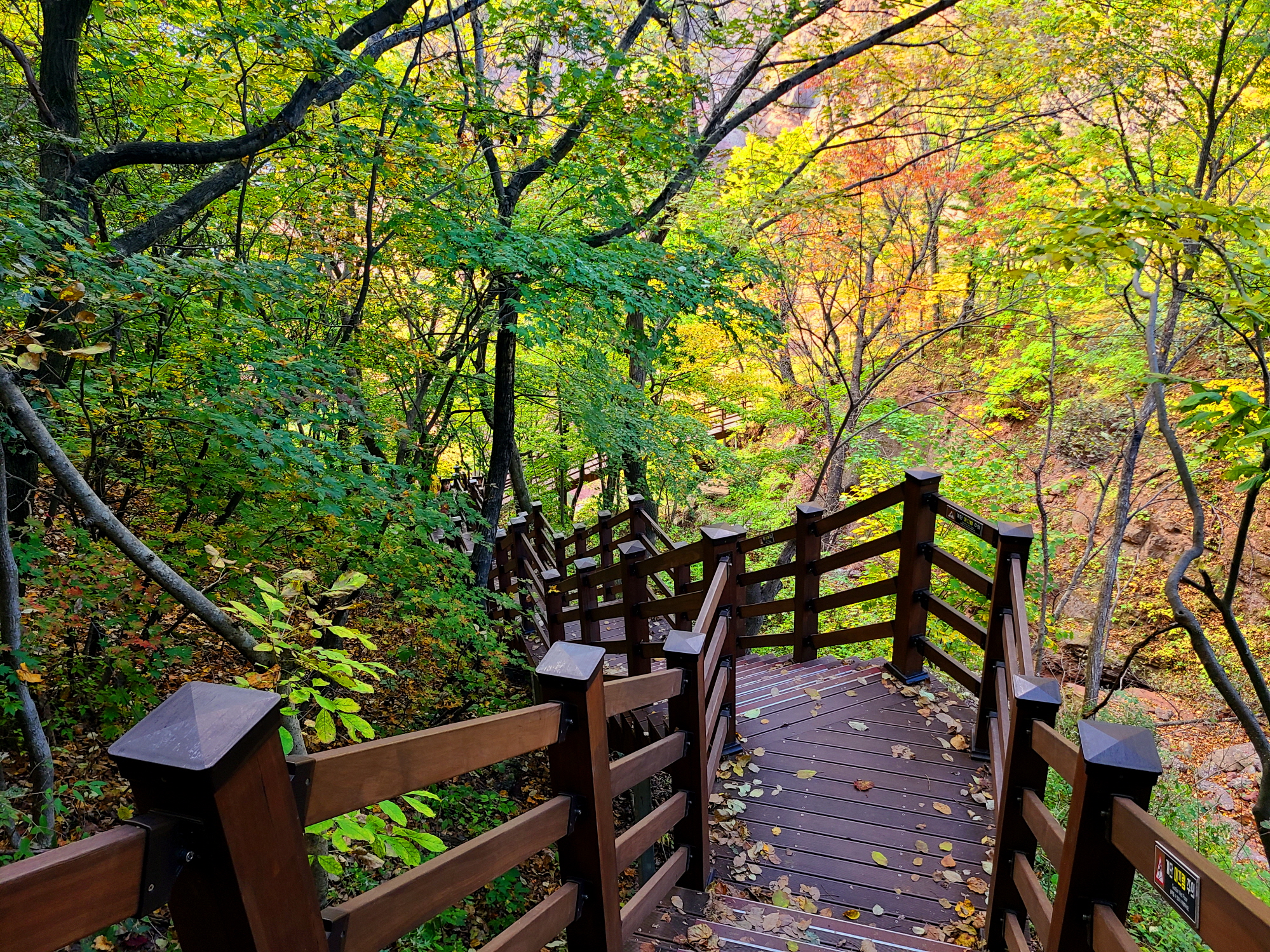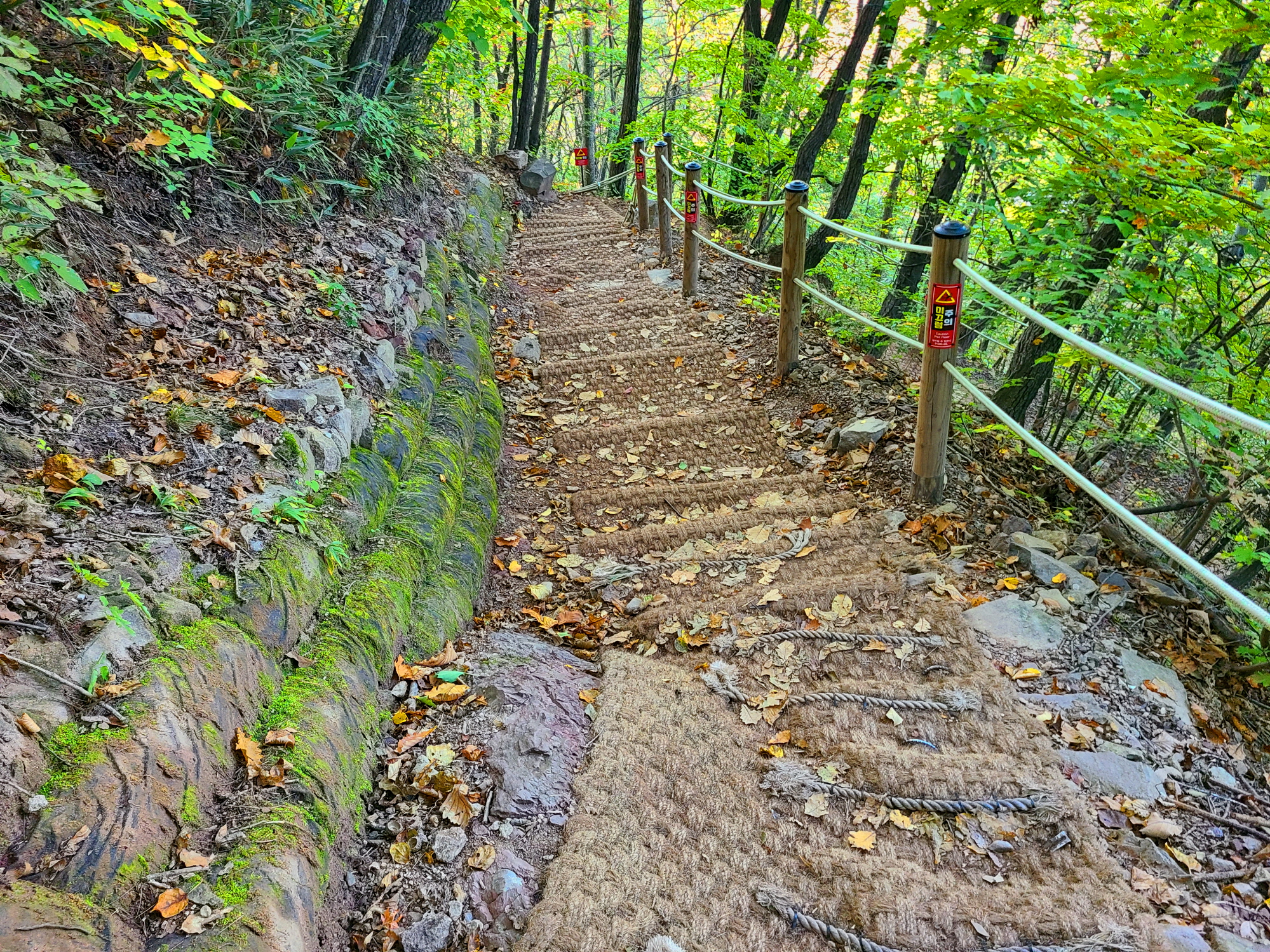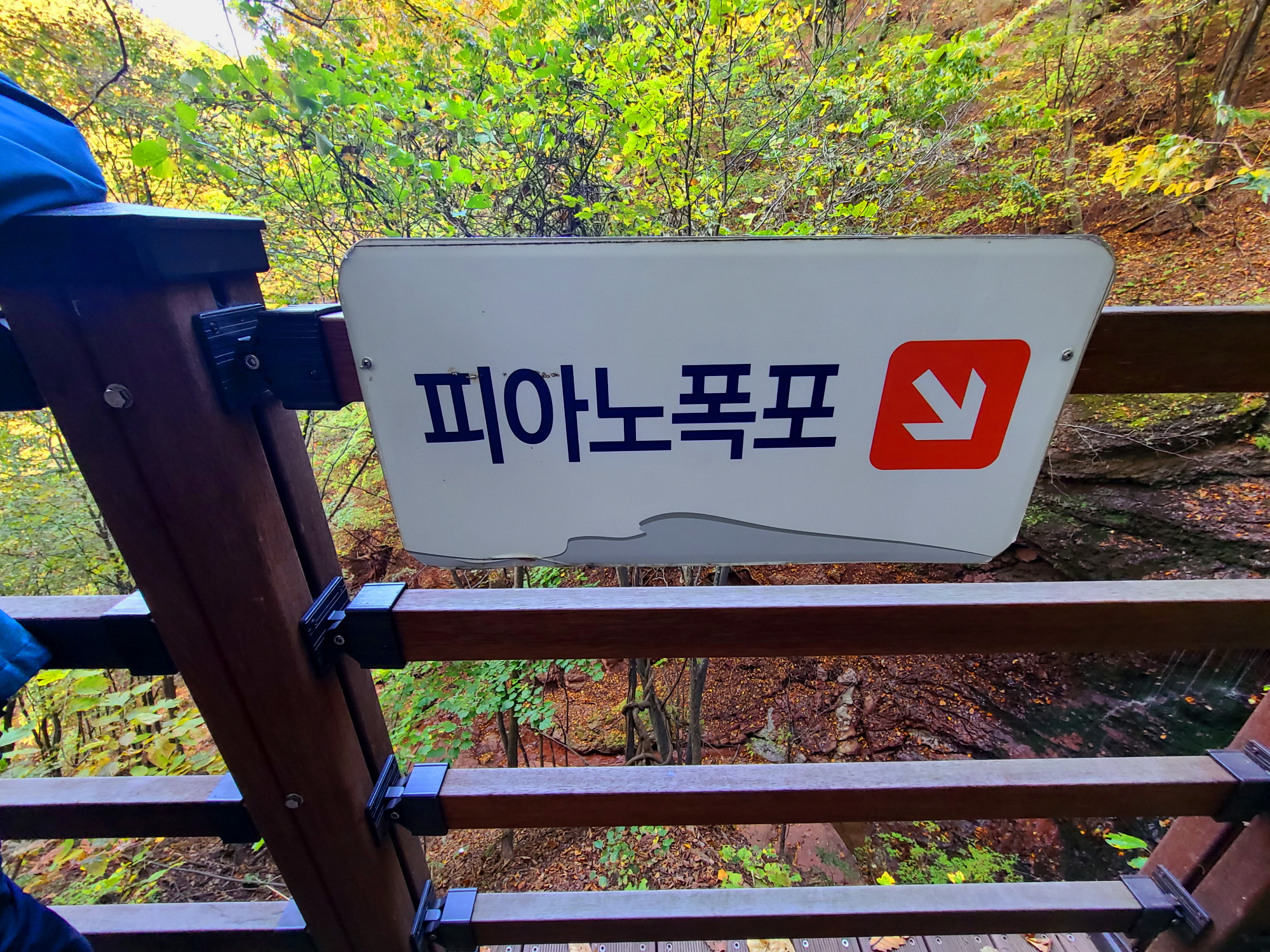 폭포 가는 길이 다소 가파르게 내려서지만 매트와 데크로 정비가 잘 되어 있어