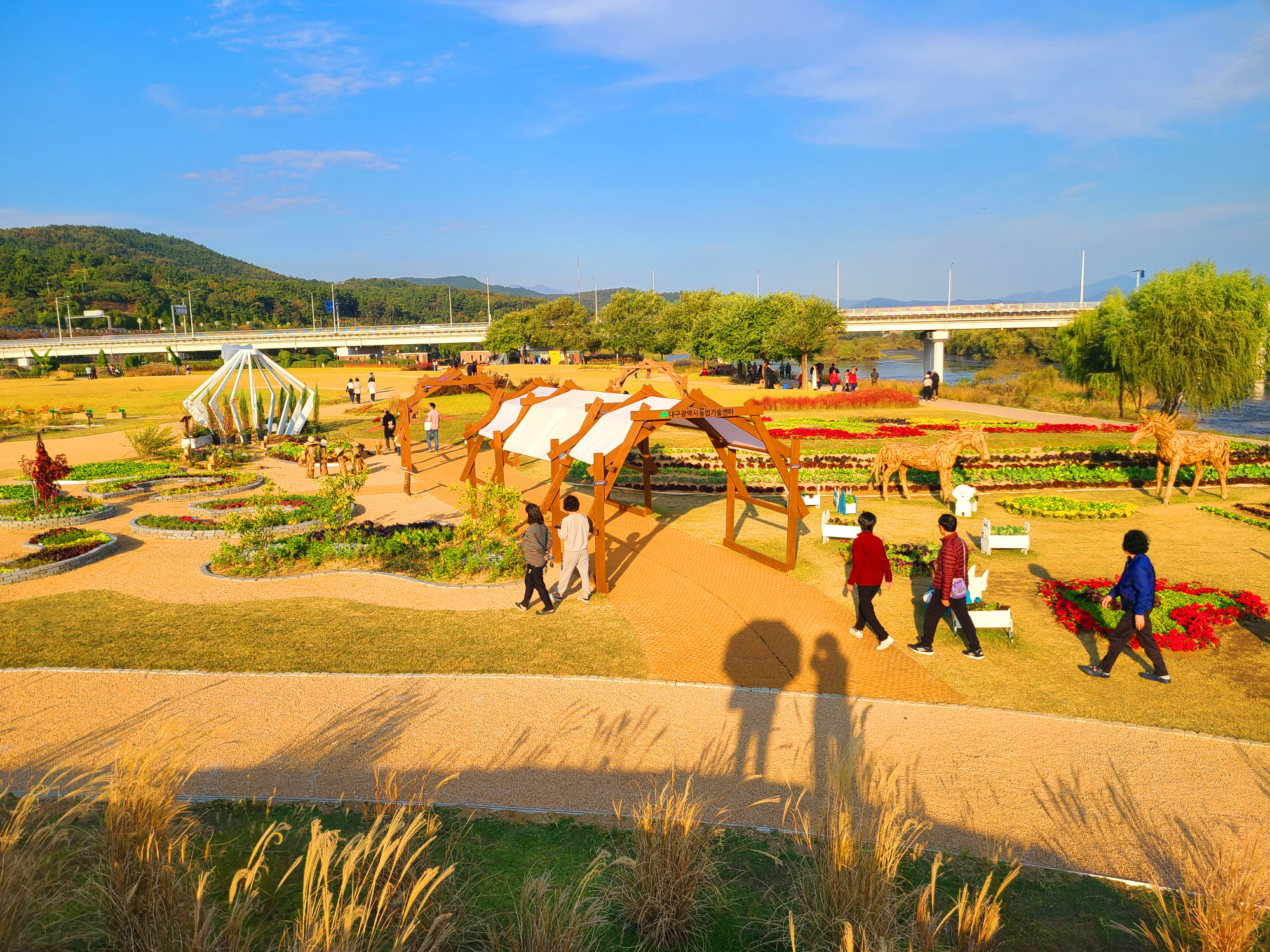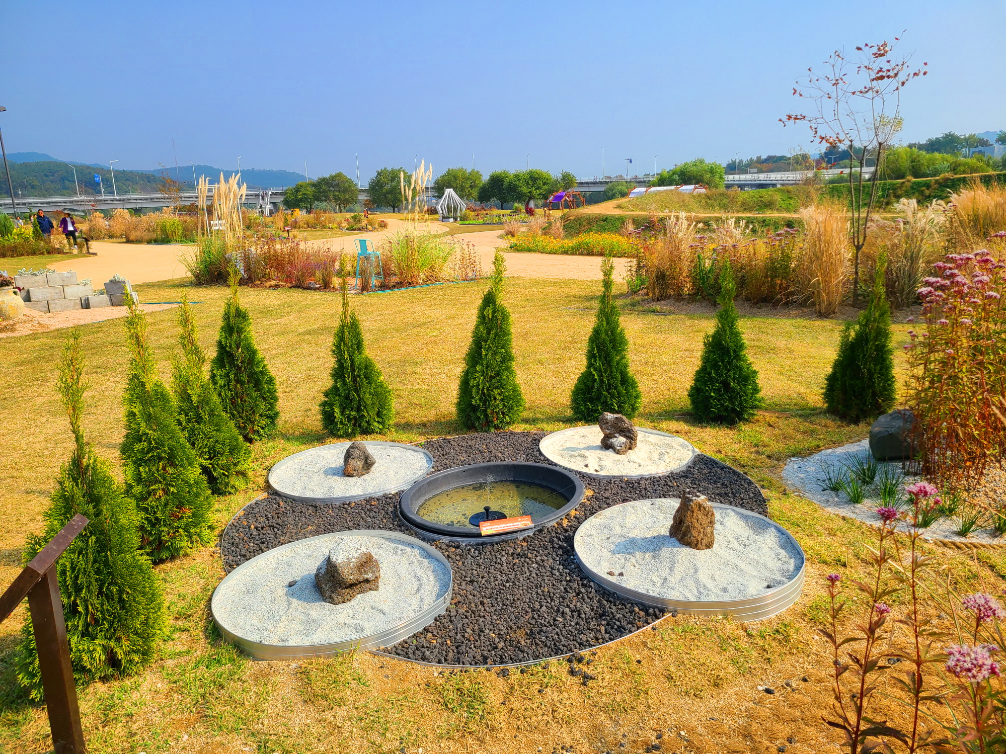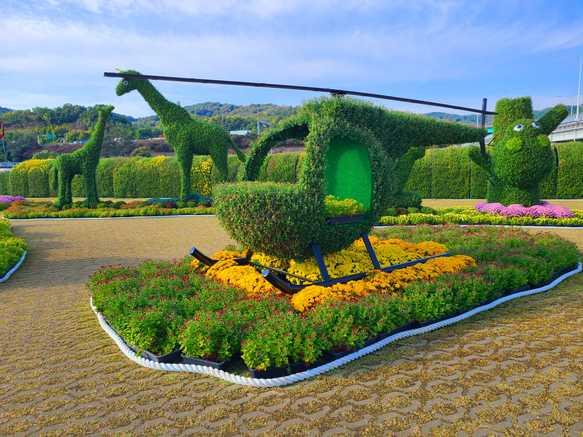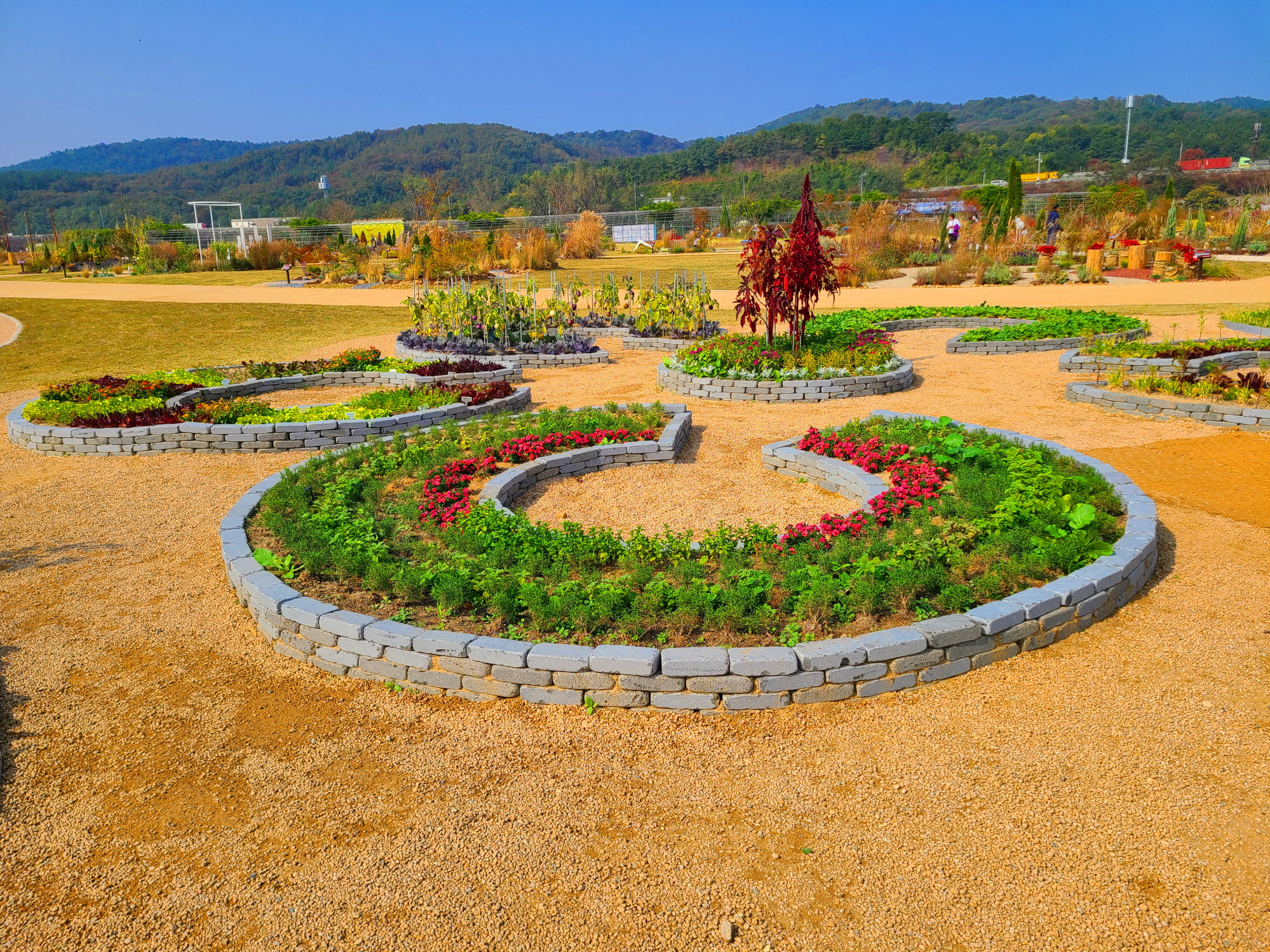 입구 좌측으로 이어지는 10.13~10.17일까지 개최한 정원박람회 전시작품, 박람회는 끝났지만 예쁜 작품들은 아직 남아 있어 관람이 가능하다.