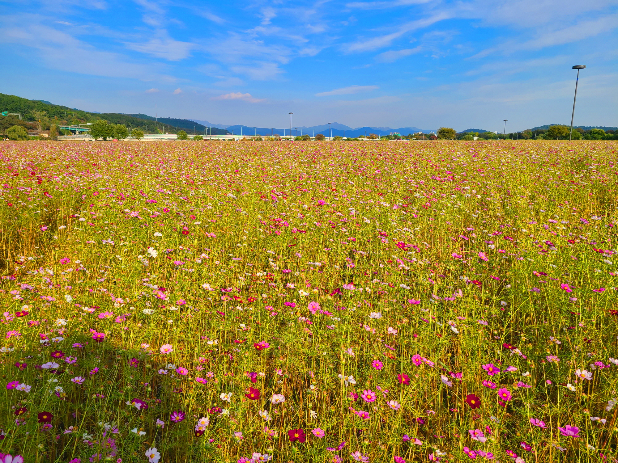 포토존은 따로 없다. 어디서나 들어가서 사진을 찍을 수 있어 인생샷을 남기려는 사람들로 인해 코스모스는 밟히고 꺾이고 몸살을 겪고 있다. 전체를 한눈에 내려다 볼 수 있는 전망대가 있었으면 하는 아쉬움이 든다.