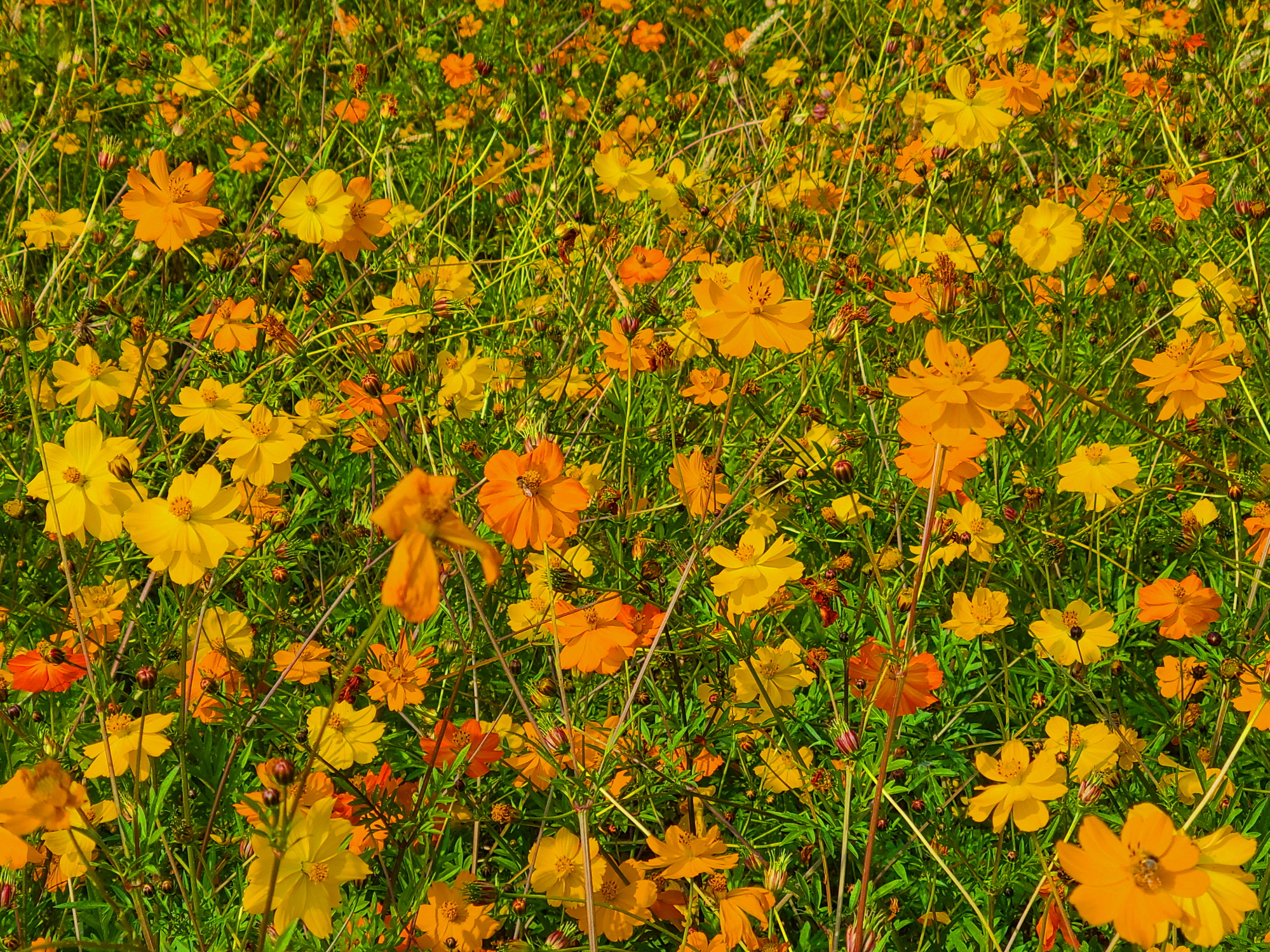 실망스러운 핑크색 코스모스와는 달리 '황화 코스모스'는 지금이 절정인 것 같다.