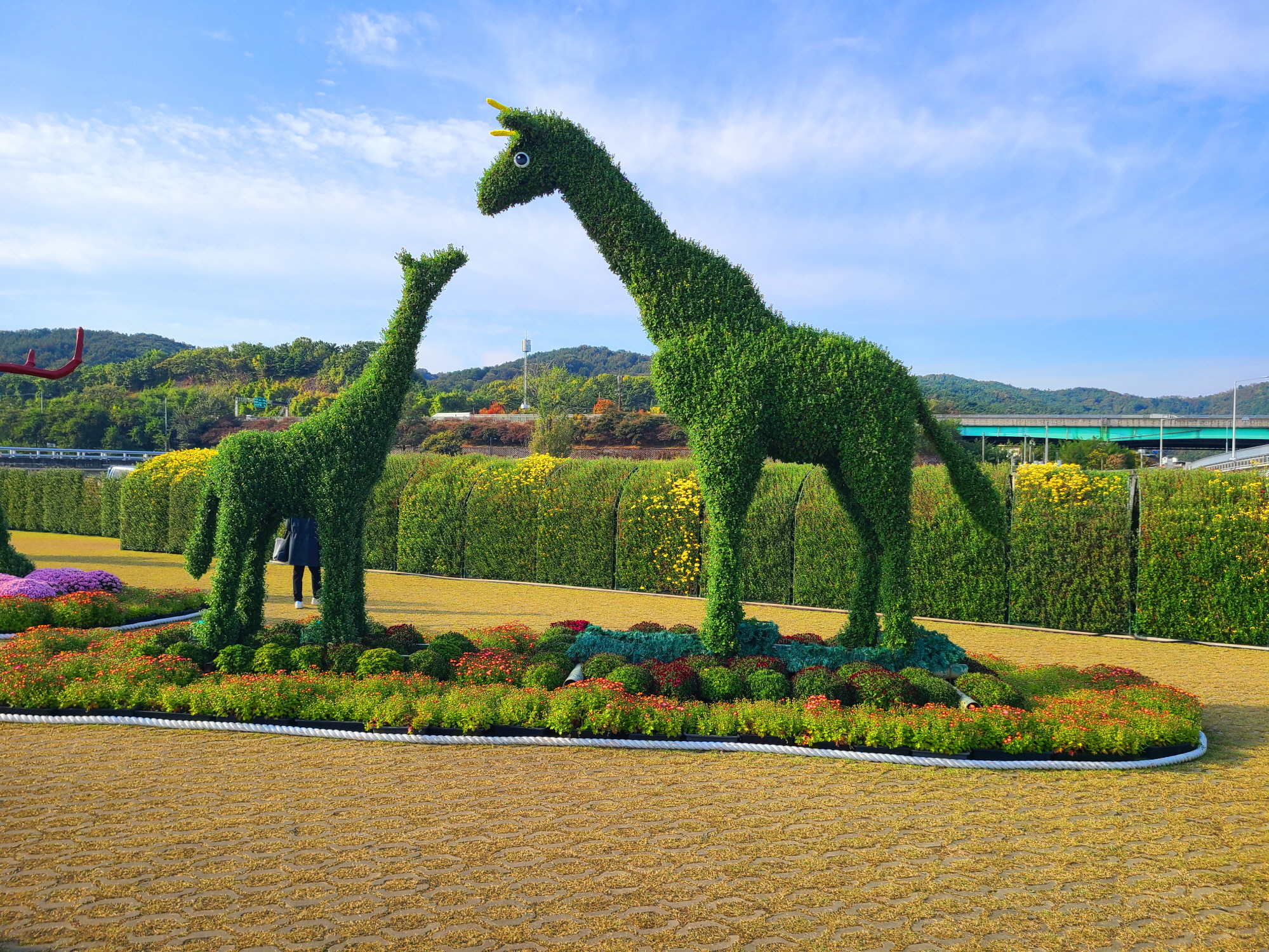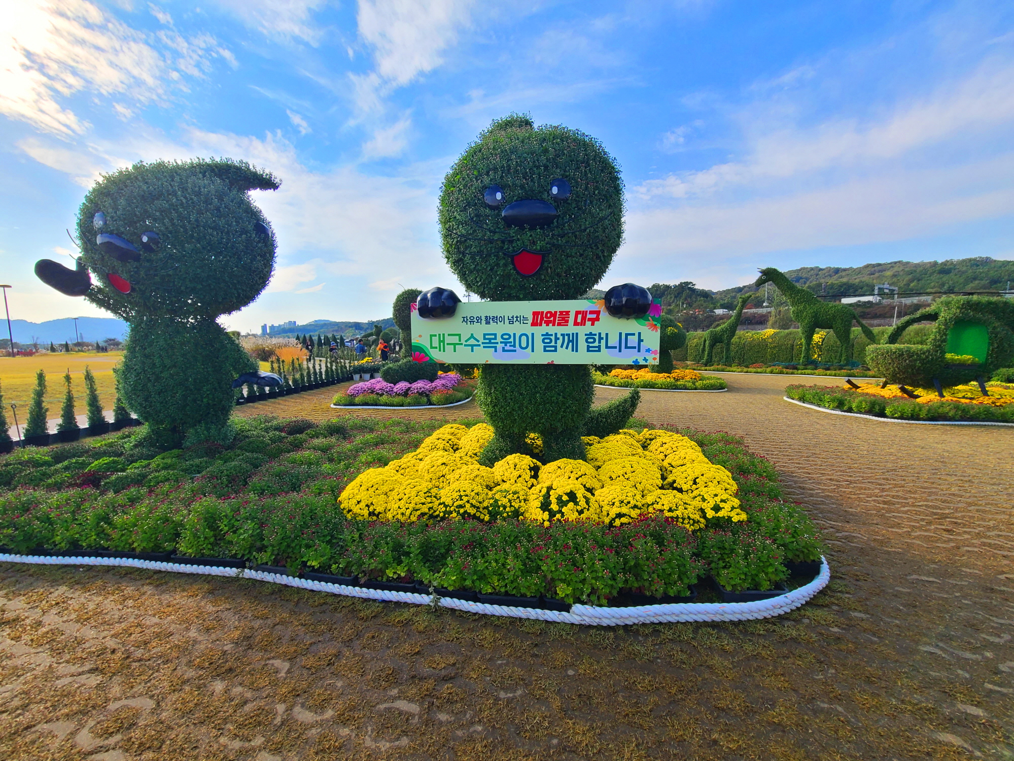하중도에 전시된 대구 수목원 국화 전시장 작품들은 대부분 대구 수목원 국화 축제 모형 작품이라 한다. 참고로 대구수목원 국화축제는 10.28~11.12까지 개최된다. 아직 국화는 대부분 개화 전이라 그윽한 국화향기는 조금 있어야 할 것 같다.