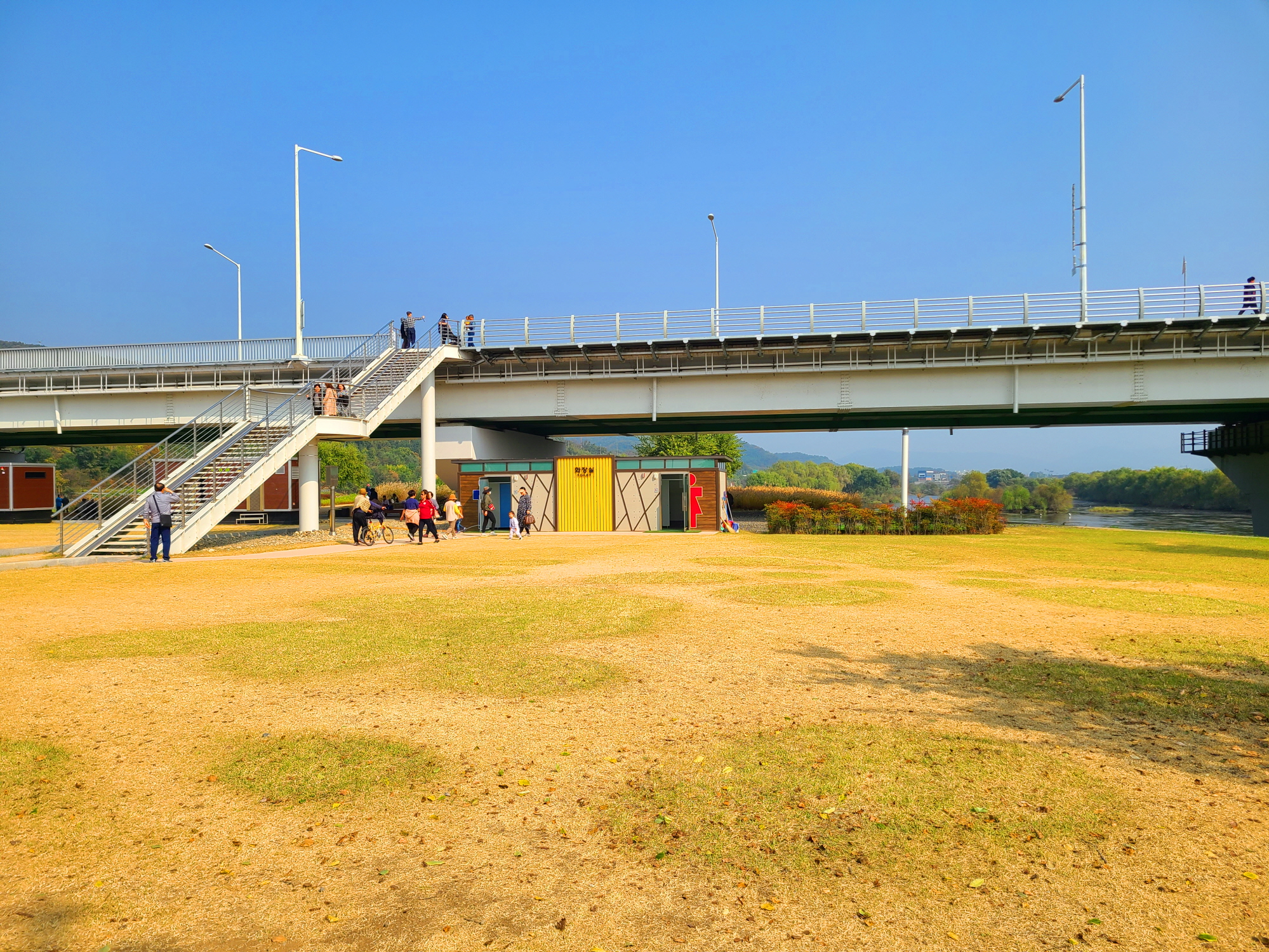 철계단 좌우로 화장실이 있다. 하중도에 화장실은 이곳뿐임으로 참고하셔요.