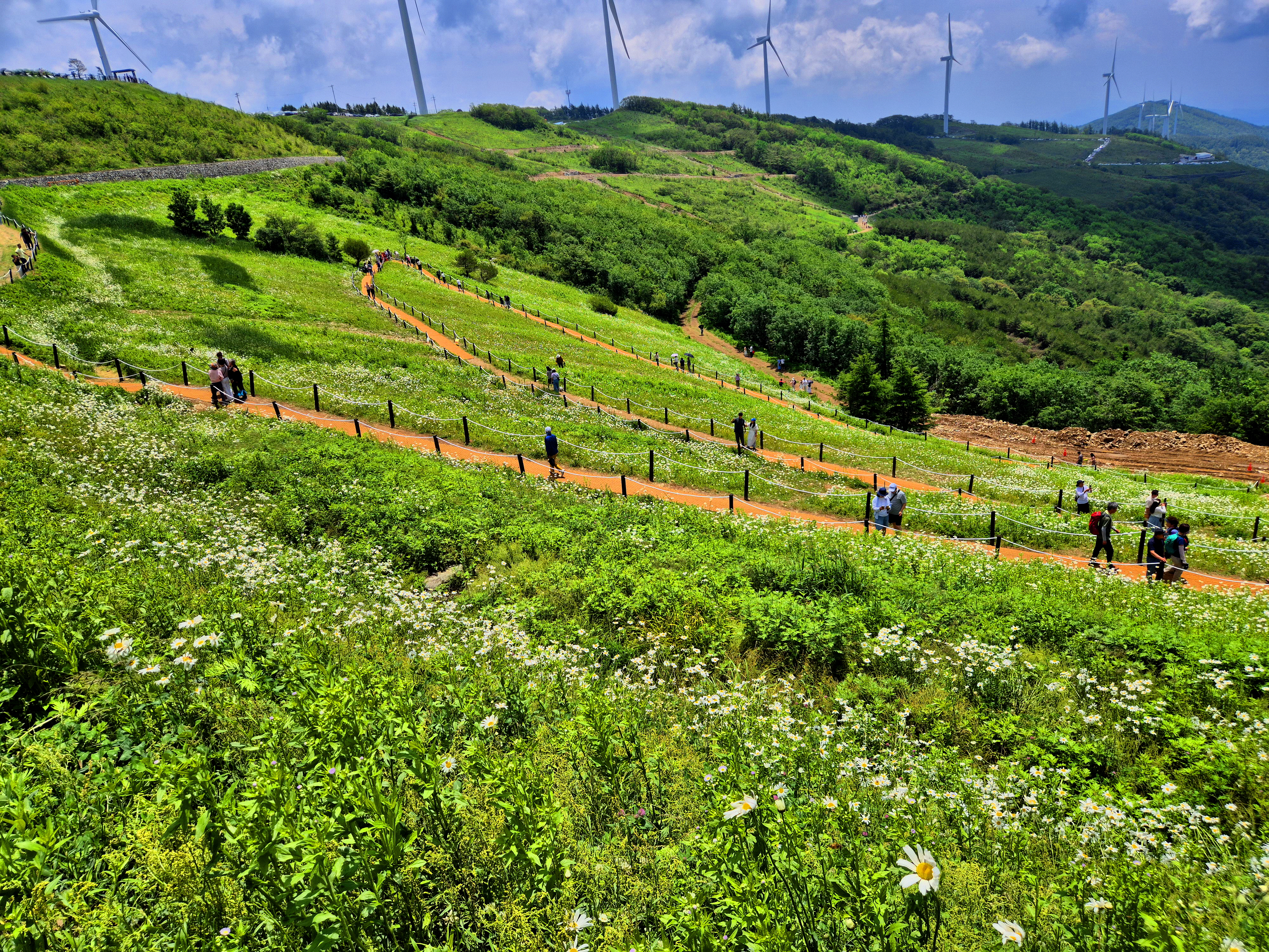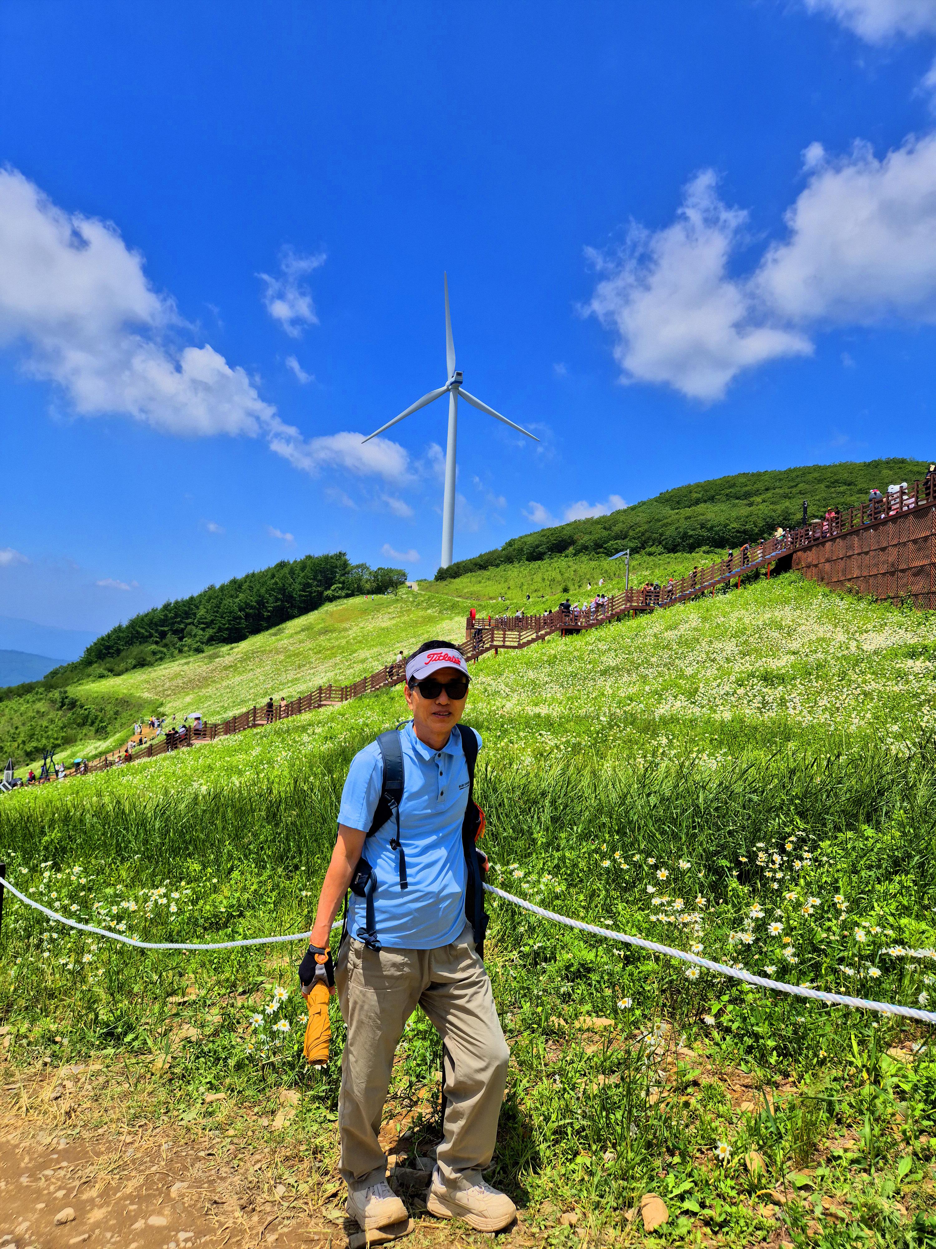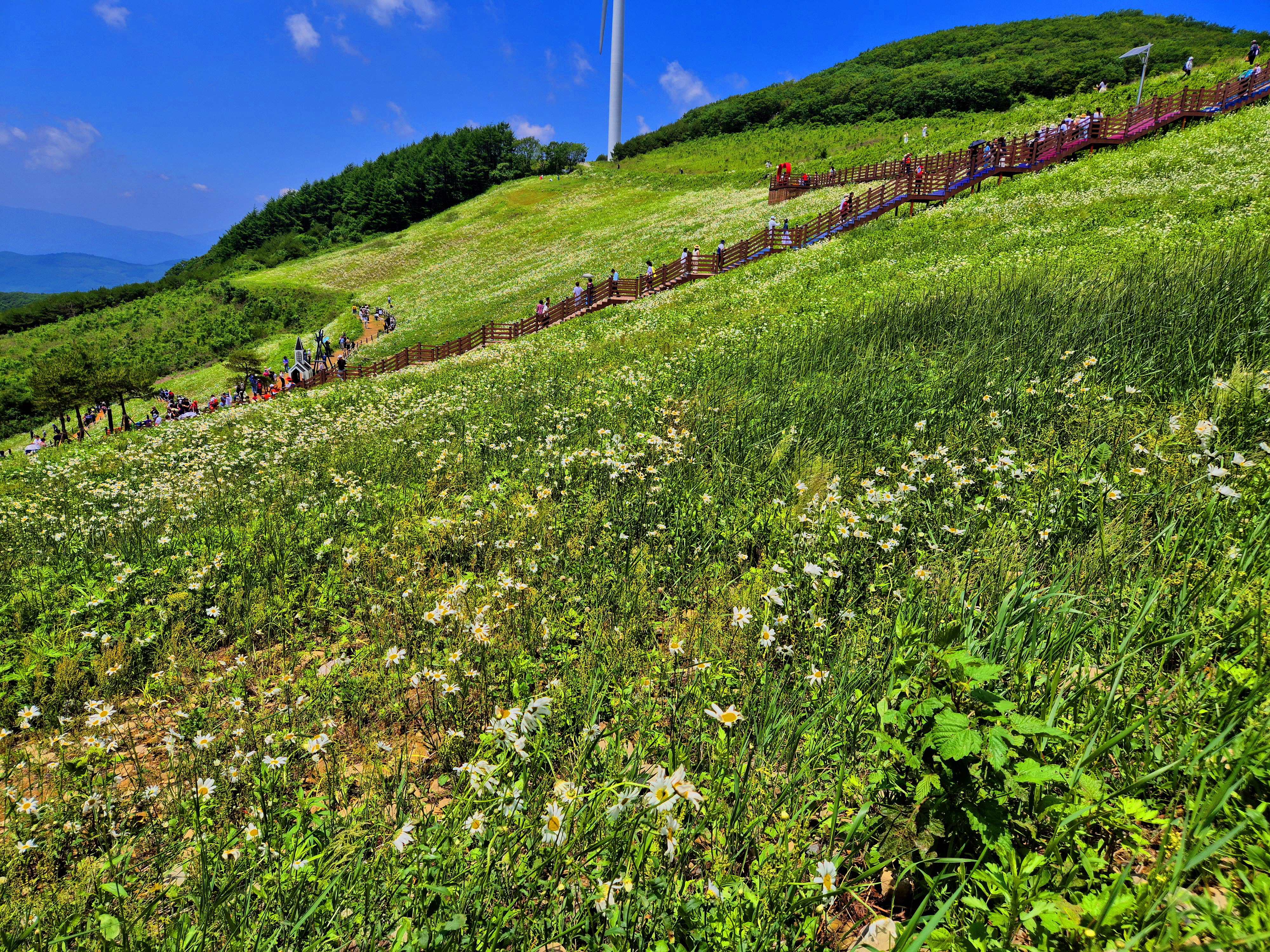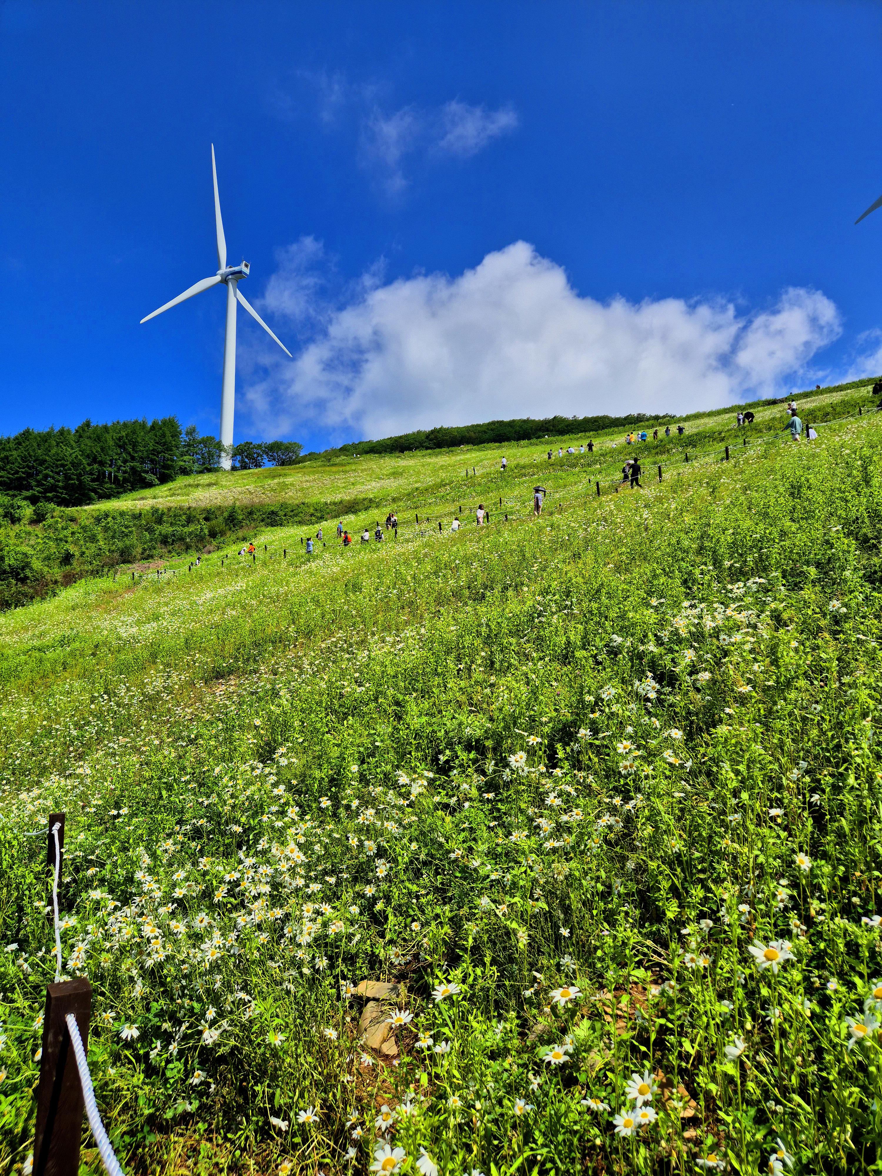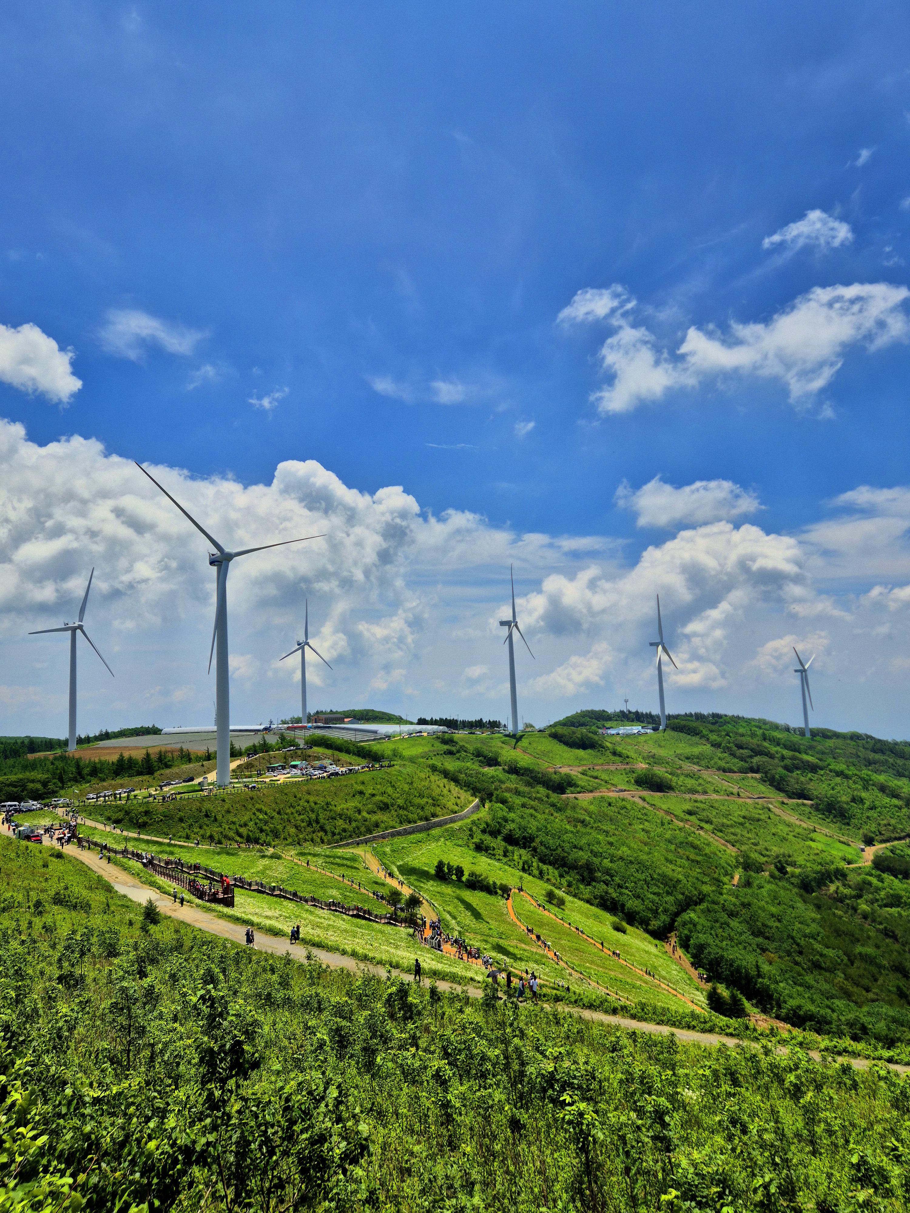 평창 청옥산 육백마지기는 ‘볍씨 육백 말을 뿌릴 수 있을 정도로 넓은 평원’이라 하여 붙여진 지명이다. 오늘날 육백마지기는 자동차로 쉽게 오를 수 있는 산 정상이자 자연 친화적 관광명소로 떠올랐다. 산길을 따라 올라가다 보면 능선을 따라 풍력발전기가 보이기 시작한다.