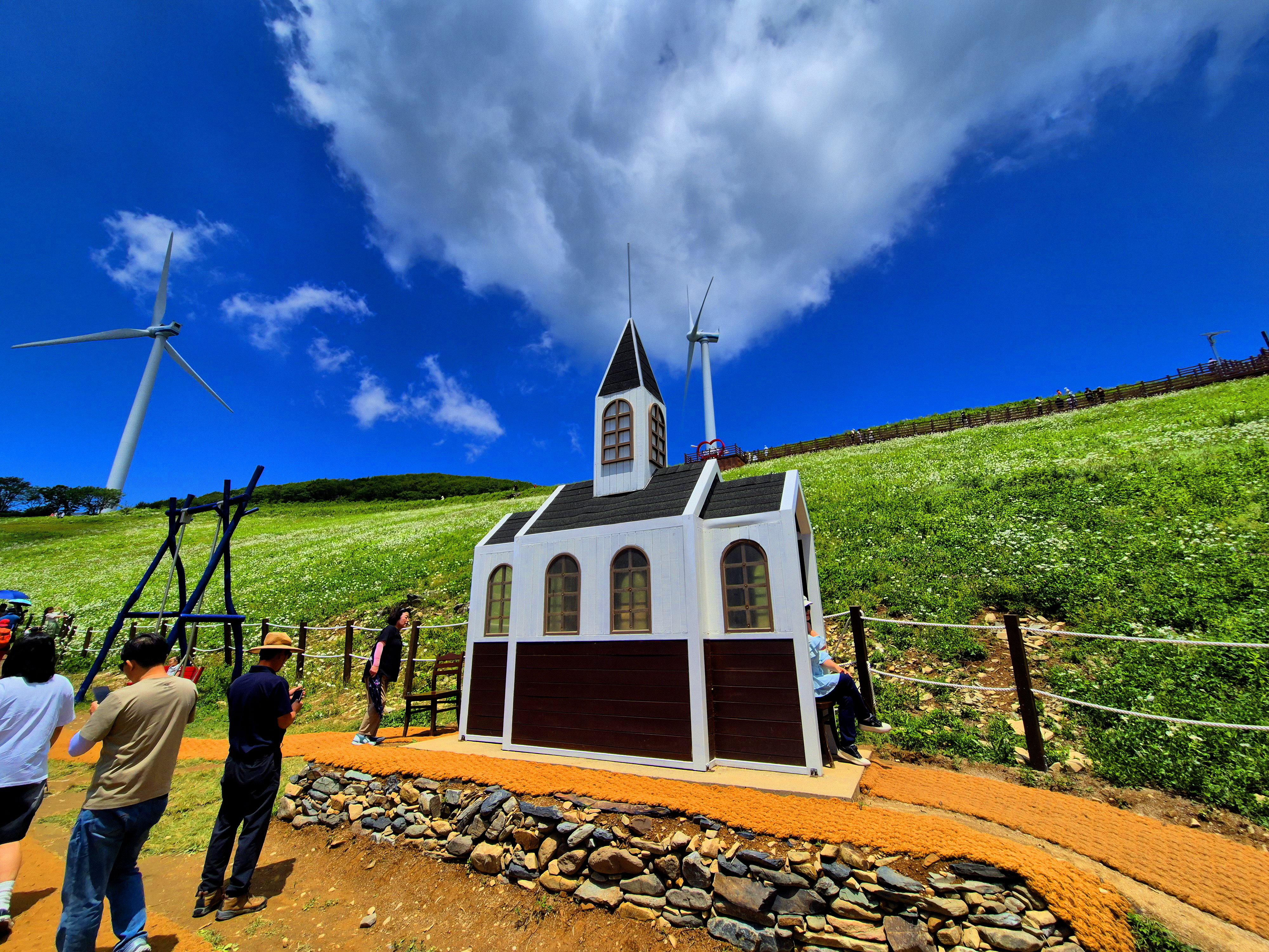 탁 트인 하늘 아래 대형 풍력발전기가 돌아가는 모습이 마치 그림 같은 풍경을 연출한다. 육백마지기의 가장 아름다운 시기는 6월에서 7월이다. 일명 ‘계란프라이꽃’이라 불리는 샤스타데이지가 만개하여 넓은 초원을 뒤덮어 더욱 아름답다. 아담한 성의 모양 조형물, 산 능선을 배경으로 사진을 찍을 수 있는 무지개 의자 등 곳곳에 포토존이 자리한다.