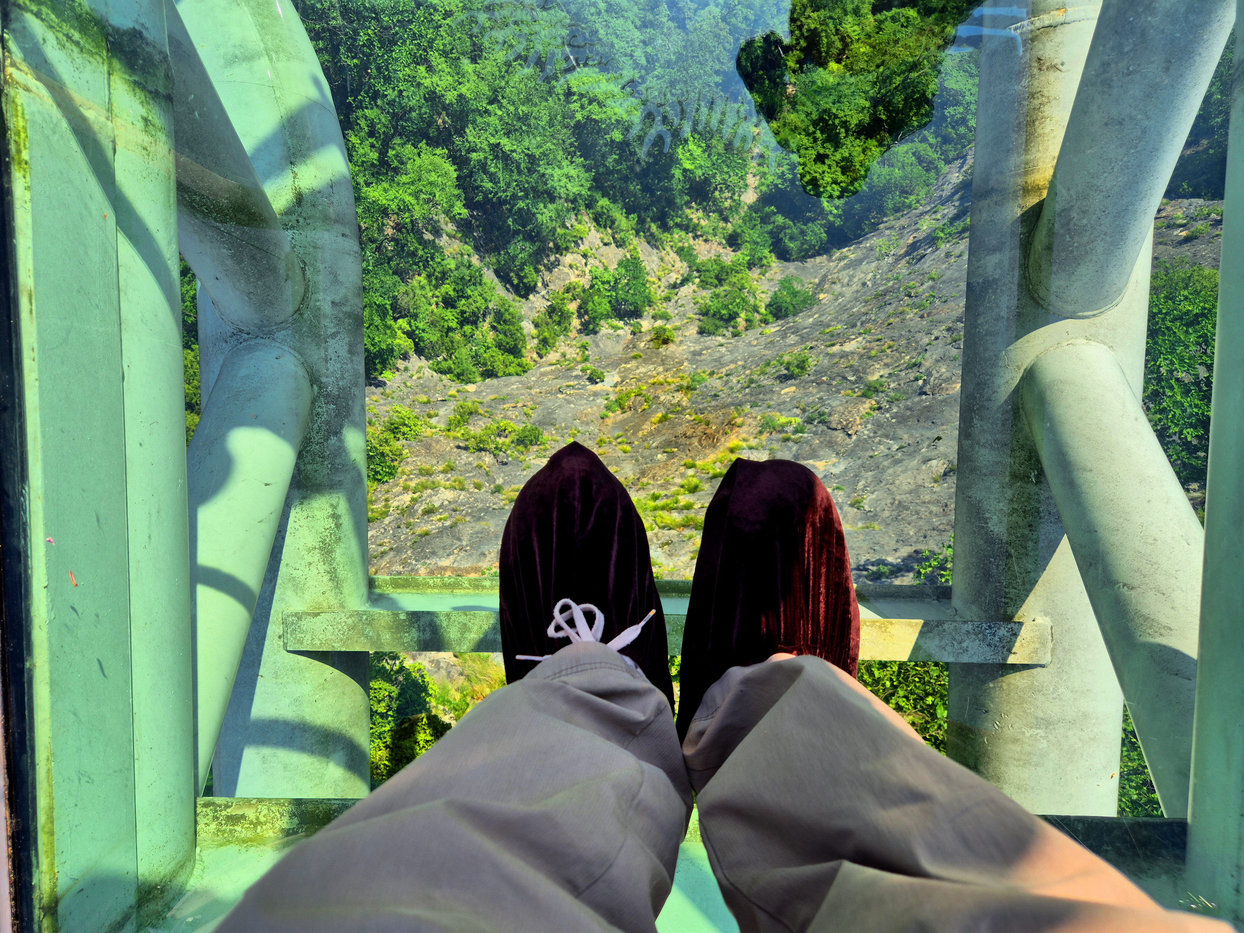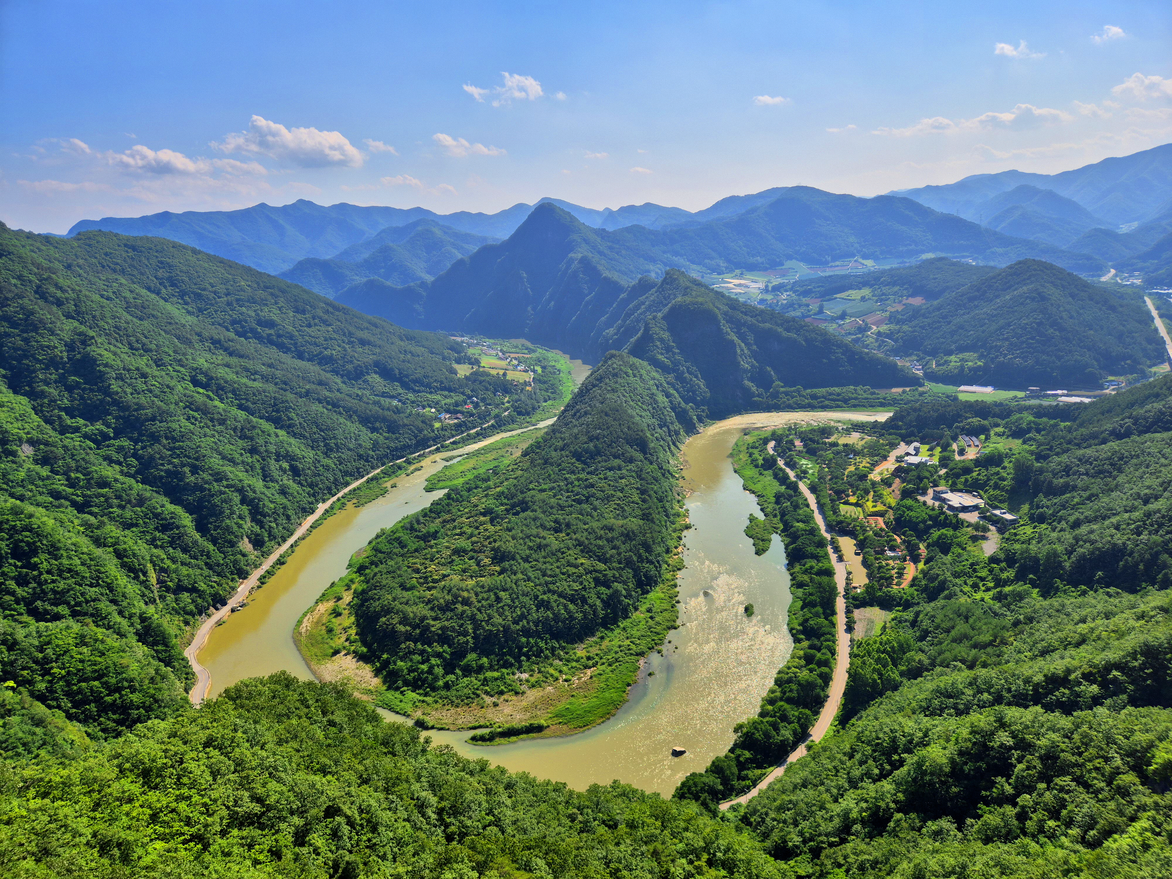 병방치 전망대에서는 한반도 모양의 밤섬 둘레를 동강 물줄기가 180˚로 감싸 안고 흐르는 풍경을 마주할 수 있다. 해발 600m의 절벽 끝에 길이 11m의 U자형으로 돌출된 구조물 바닥에 강화유리를 깔아 하늘 위를 자유롭게 걷는 듯한 기분이 들게끔 한다.