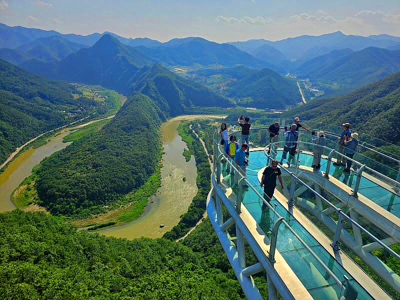 발아래로 동강이 만들어낸 한반도 모양의 지형을 감상하고 짜릿한 조망을 느낄 수 있어 관광객들에게 인기 만점이다. 또한 스카이워크에서 내려다보이는 정선 한반도 지형은 영월 선암마을, 옥천 두준봉과 함께 유명하다.